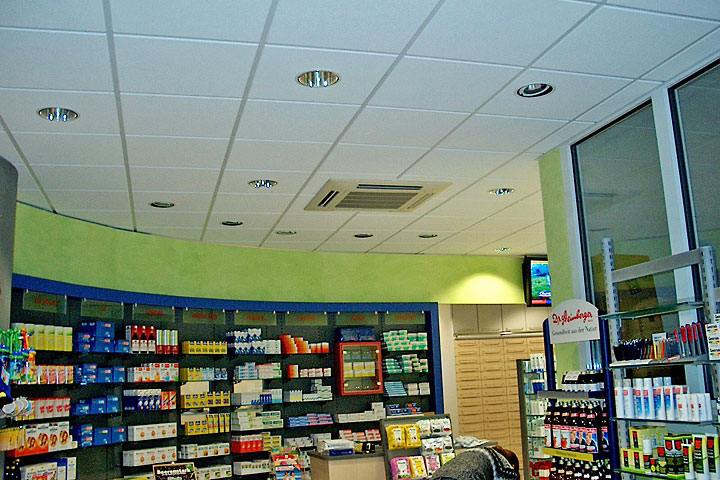 Klima Kassetteneinbaugeräte zeichnen sich durch Ihre unauffällige Optik aus. Die Klimaanlagen Inneneinheiten werden oftmals in Arztpraxen, Zahnarztpraxen, Apotheken, Büros und anderen Gebäuden installiert. Kassetteneinbaugeräte besitzen eine flache Optik und werden in den Raumdecken, der zu kühlenden Räume installiert, so fallen Sie weniger auf und sorgen gleichzeitig für ein angenehmes Wohlfühlklima.