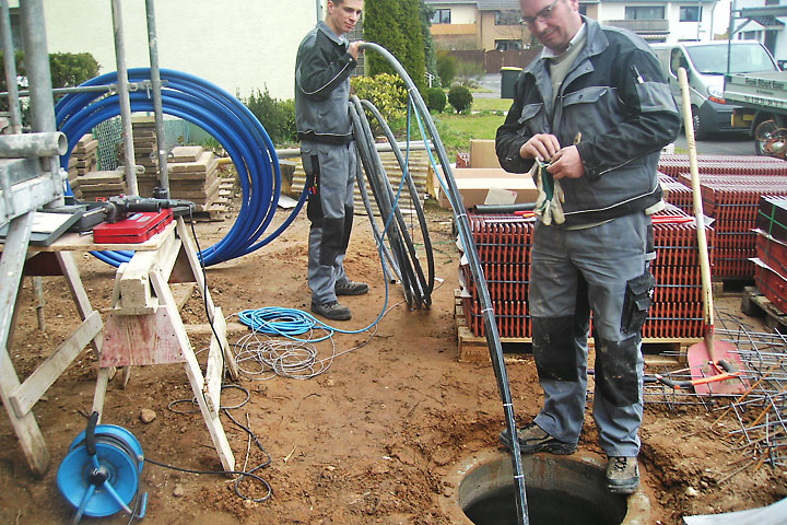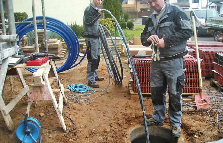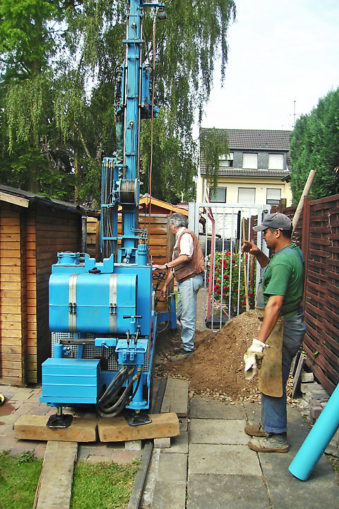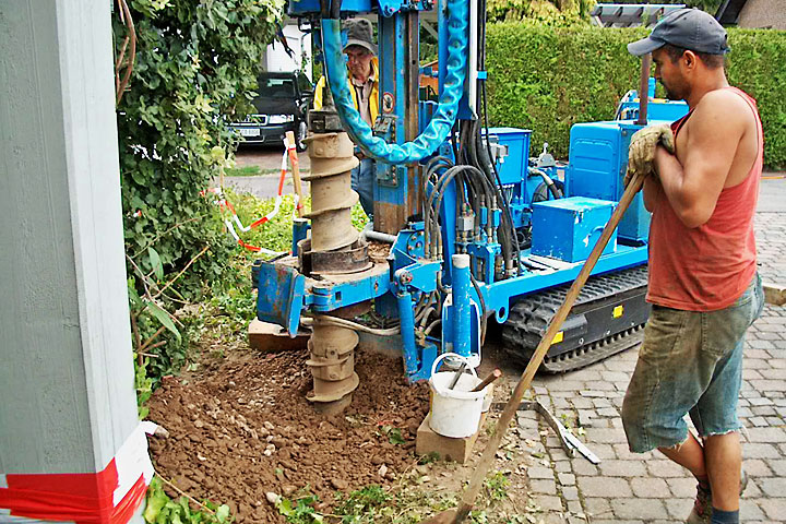 Erdsonden werden mithilfe von Bohrungen in tiefe Erdschichten (etwa zwischen 40 und 100 Metern) eingelassen. Im Gegensatz zu Erdkollektoren sind Erdsonden platzsparender. Sie benötigen jedoch eine Genehmigung vom Bau- und Planungsamt Ihrer Stadt. Diese wird Ihnen abhängig von der Bodenbeschaffenheit, vom Grundwasserstand und der Standhaftigkeit Ihres Bodens bezüglich schwerer Bohrgeräte erteilt. Wie viele Erdsonden verlegt werden und wie viele Bohrungen durchgeführt werden müssen hängt dabei vom Bedarf und der Beschaffenheit ab.